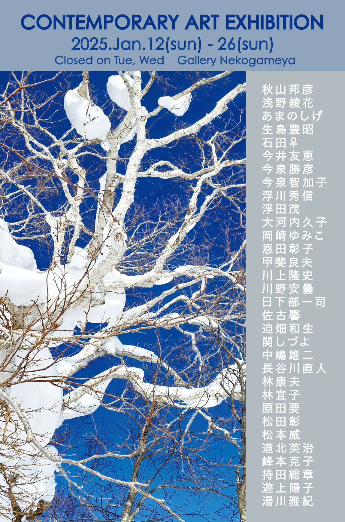 32 artisits join this group show. Art works are in many genre,painting, sculpture, photo, and print. So the materials are also many.We would like to introduce Japannese contemporary art and make it possible to collect them.It will be the good chance to see many art works in different style at one time.